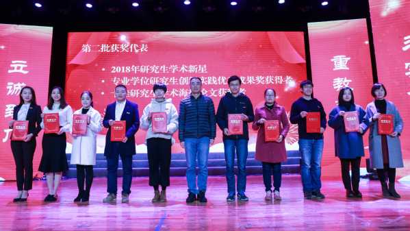 据悉,本次大会表彰了9名国家级学科专业技能竞赛一等奖获得者、27名全国全日制教育硕士教学技能竞赛获得者、35名校教育硕士教学技能竞赛获得者、8名2017-2018学年理论学习竞赛获奖者、10名2018年研究生学术新星、8名2018年专业学位研究生创新实践优秀成果奖获得者、10名2018年研究生十佳学术海报论文获得者、25个校先进研究生班集体、21位三好研究生标兵、166位三好研究生、197位优秀研究生干部、129名国家奖学金、3831名学业奖学金获得者、10个2018年研究生科学道德与学风建设优秀组织奖获奖单位。