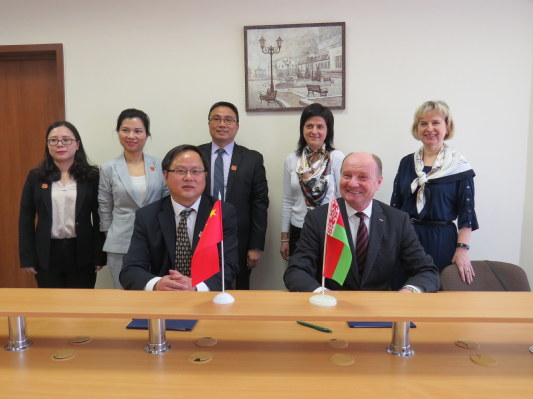 Zhang Huarong, Dean of Concord University College, and three staff members for international affairs visited Polessky State University (PSU) in Belarus from March 27 to 28. During the visit, both sides exchanged views oncollaboration in running schools and reached a collaborative intention.