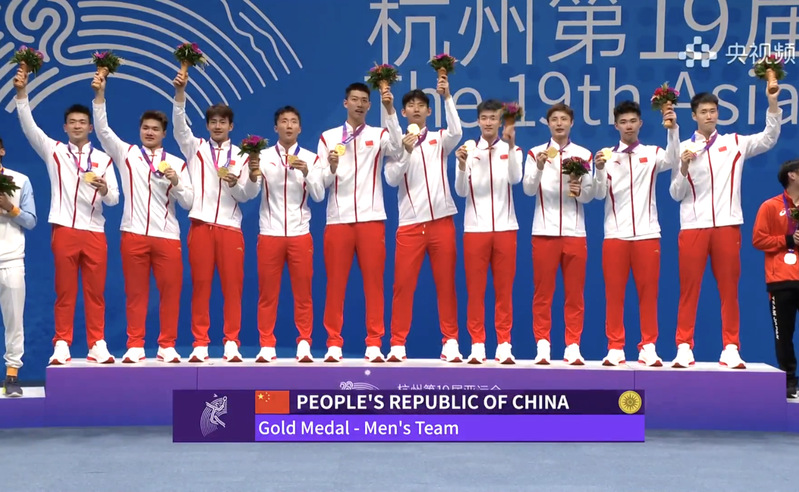 Among them, Huang Qianqian, undergraduate in class of 2025, majoring in sports training, won the gold medal in women's foil individual competition. Chen Qingyuan, undergraduate in class of 2024, Huang Qianqian, undergraduate in class of 2025, and Wang Yingying, undergraduate in class of 2027, won the women's foil team championship with their teammates. Dong Wenxin, undergraduate in class of 2026, cooperated with her teammates and won the gold medal in women's water polo, achieving four consecutive Asian Games championships and winning the ticket to the Paris Olympic Games. Ou Xuanyi, graduate student in class of 2023 with his teammates won the gold medal in man’ team events in badminton.