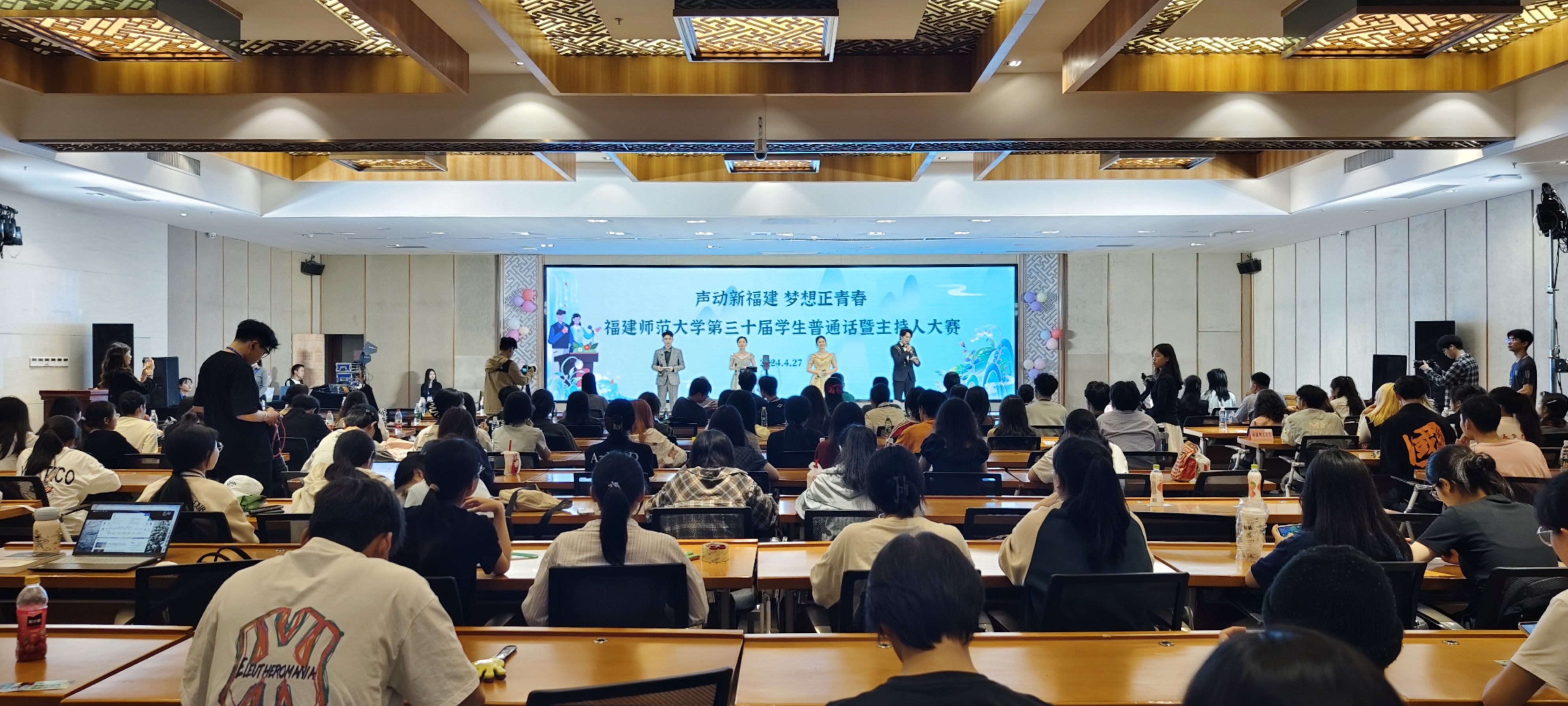 4月27日晚,由校党委宣传部、校语言文字工作委员会联合举办的“声动新福建  梦想正青春”校第三十届学生普通话暨主持人大赛决赛在旗山校区宏达厅举行。
