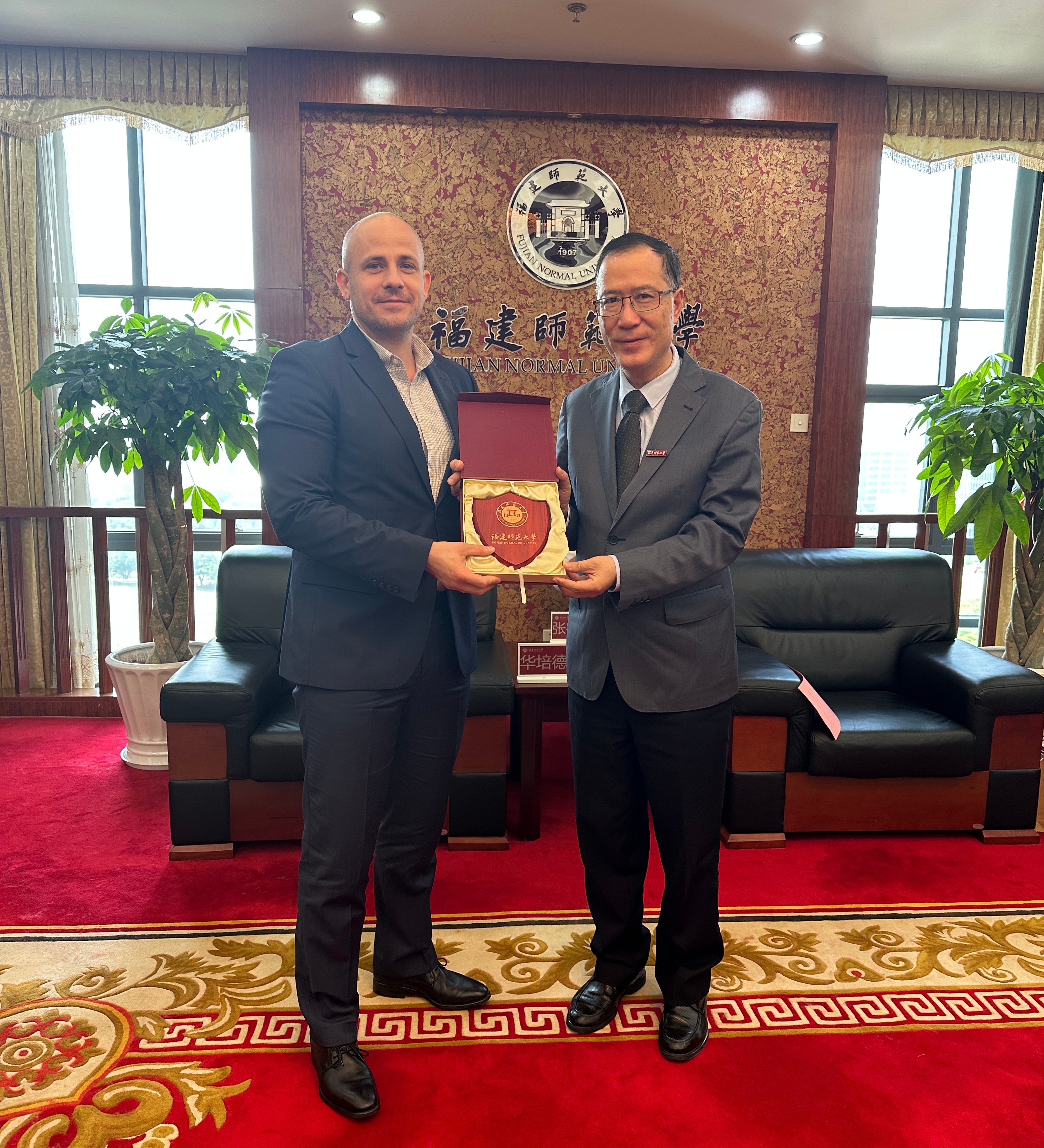 4月28日,匈牙利驻广州总领事华培德先生和商务领事霍雷先生一行来校访问。校长王长平,国际合作与交流处、传播学院相关负责人参加会谈。