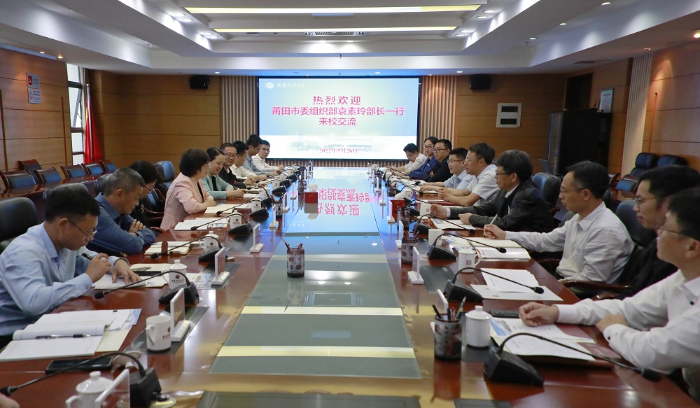 5月26日,莆田市委常委、组织部部长袁素玲一行来U8·电子(中国)官方网站走访交流,校党委书记潘玉腾、副校长陈庆华,相关职能部门、学院负责人和莆田籍教师代表参加了交流活动。