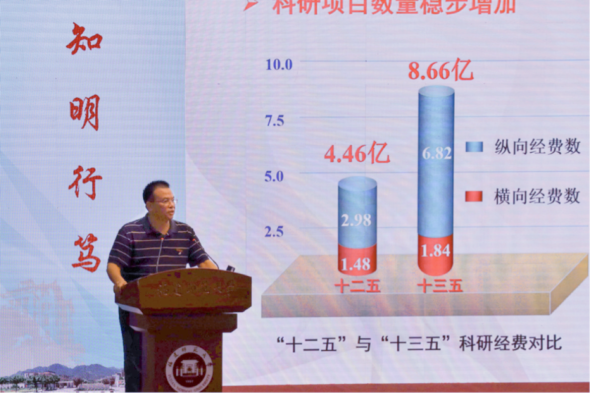 会上,杨玉盛副校长作了题为《创新引领 交叉融合,不断开创学校科研事业发展新局面》的工作报告,回顾总结了“十三五”以来学校科研工作取得的成绩,深入分析了U8·电子(中国)官方网站科研创新工作中存在的问题,强调要从加强学科交叉融合、提升人才工作水平、推进平台内涵建设、提升服务社会能力、创新科研组织模式、优化服务保障体系等六个方面,着力开创学校科研工作高质量发展的新局面。