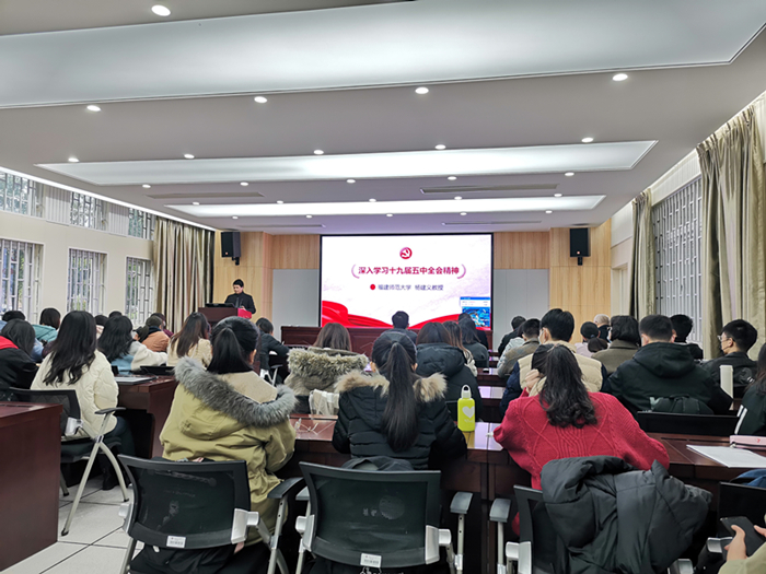 1216日,心理学院邀请校党委讲师团成员杨建义教授作“深入学习贯彻党的十九届五中全会精神”讲座,学院全体师生党员到场聆听。