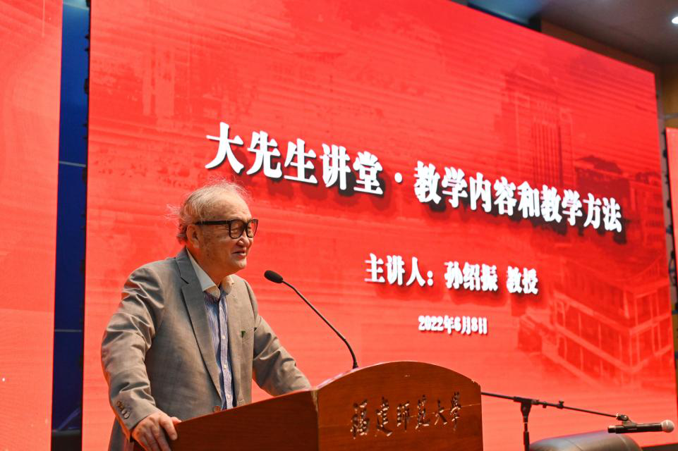 孙绍振教授为全体师生带来以教学内容和教学方法为主题的“大先生讲堂”精彩首讲。他纵论古今、横贯中西,认为要用马克思主义的辩证法、实践论、矛盾论指导学校卓越人才培养改革,坚持中华文化主体性、着力树立文化自信,结合我国的教学改革实践,批判性地吸收和运用西方的教学改革理论。讲座内容丰富、思想深邃,极大鼓舞和启发了现场师生。