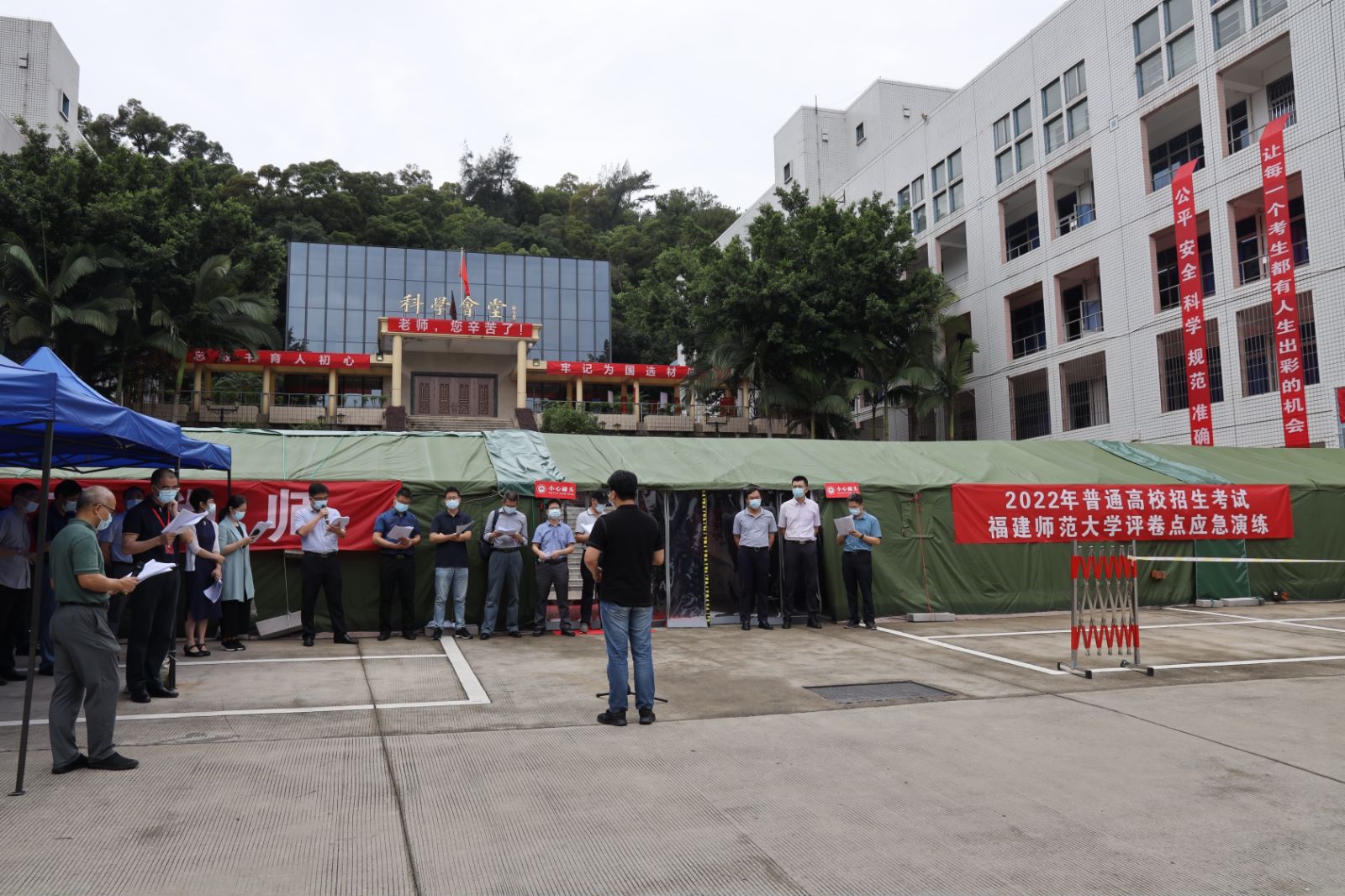为认真贯彻落实2022年全国普通高校招生考试安全工作电视电话会议和省招委会第一次全体会议精神,6月7日,U8·电子(中国)官方网站在仓山校区组织开展2022年福建省普通高校招生考试U8·电子(中国)官方网站评卷点应急演练。副校长、评卷工作领导小组常务副组长郑家建,各职能工作组负责人参加演练和现场观摩。
