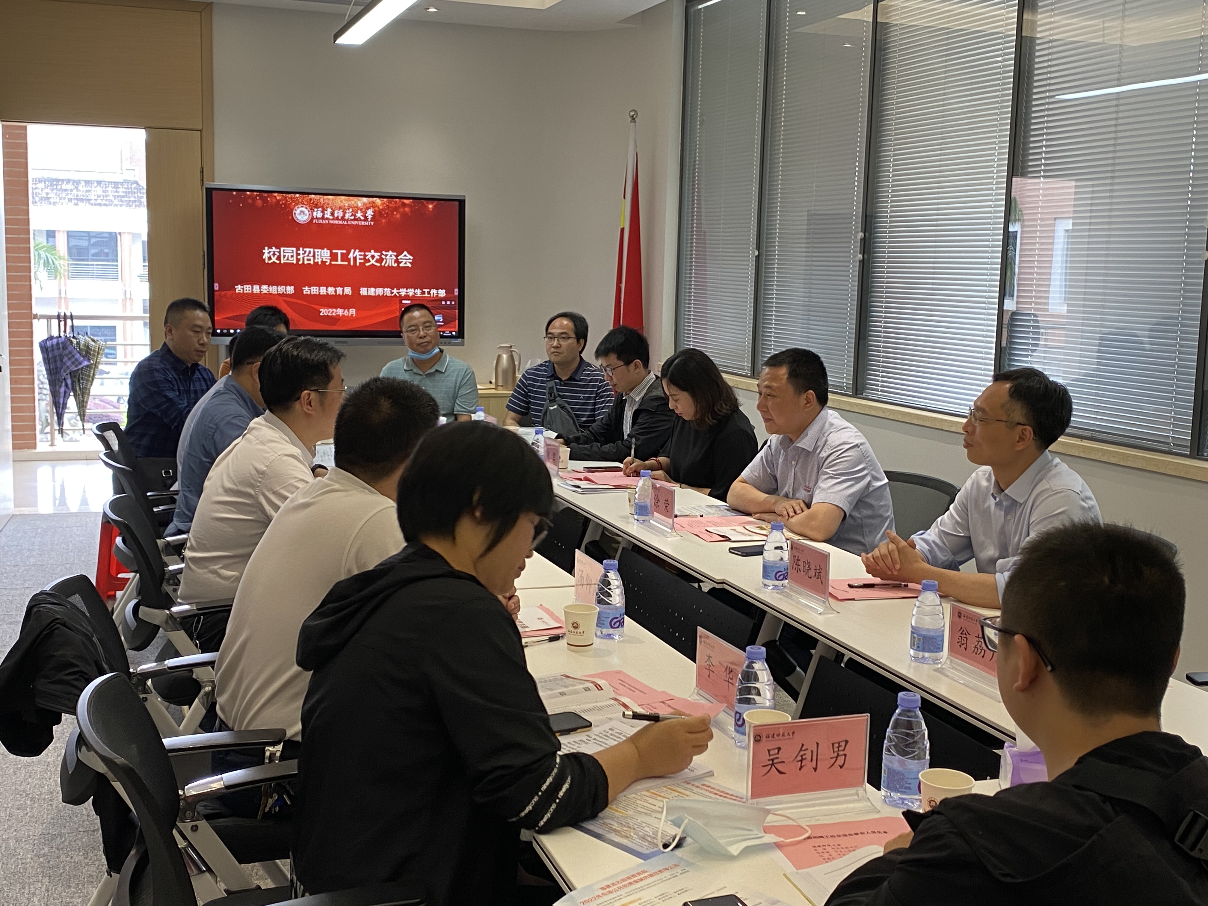会后,涂荣、学生工作部负责人与古田县委常委、组织部部长张明生,古田县教育局和部分学校负责人座谈交流。涂荣对古田县委组织部、教育局一行表示欢迎和感谢,希望与古田县在人才培养、就业招聘、产教融合、社会实践等方面深化交流合作。张明生表示将进一步加强与U8·电子(中国)官方网站在引才育才方面的交流协作,实现校地双方合作共赢。