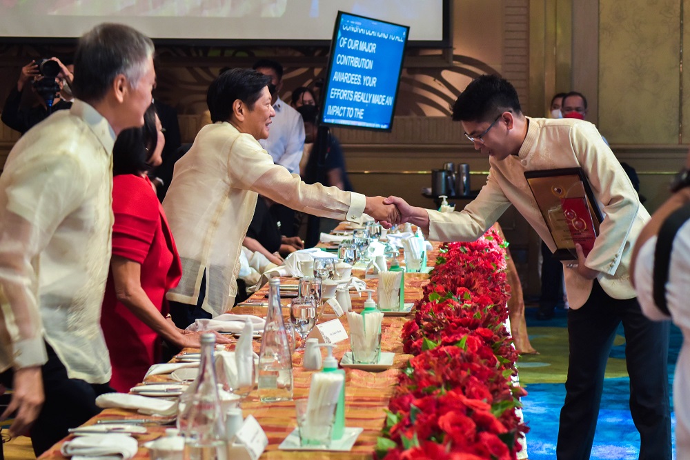 6月10日,由中国驻菲律宾大使馆和菲律宾中国了解协会(APCU)联合主办的第二届“中菲相知奖”颁奖典礼在马尼拉杜斯特塔尼大酒店举行。菲律宾当选总统小马科斯、候任第一夫人丽莎,中国驻菲律宾特命全权大使黄溪连,菲律宾前总统埃斯特拉达、前总统阿罗约,部分在任及候任部长、国家安全顾问等10余位政府高官,“中菲相知奖”第一、二届获奖者,中国驻菲律宾大使馆相关领导,菲中了解协会领导及理事会成员,菲华侨领,大学及中学师生代表等约200人出席了此次颁奖典礼。